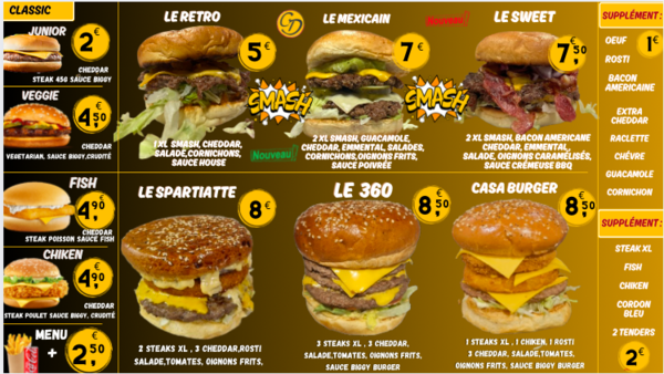 Que vous soyez fan de poulet maison, bacon US, smash vegane ou tacos généreux, nous avons de quoi satisfaire toutes les envies. Terminez sur une note sucrée avec nos milkshakes et desserts gourmands.